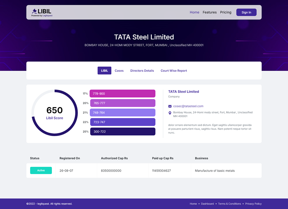 Legal due diligence often involves reviewing vast amounts of case history, compliance documents, and regulatory data. LIBIL automates this with AI-powered intelligence, delivering comprehensive risk reports in minutes — not days.